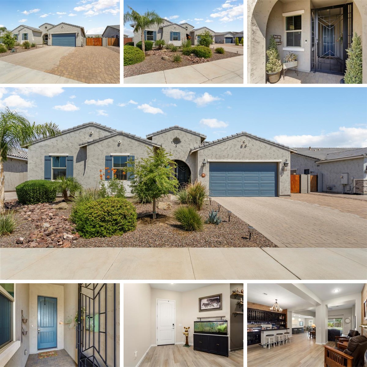 Discover the perfect blend of luxury and comfort in this beautifully upgraded Meritage home located within a prestigious gated community at Sadella. Boasting over $70,000 in options/upgrades/updates, such as the chef's kitchen, which is a culinary dream, complete with quartz countertops, a coffee bar, and an oversized pantry. The spacious HUGE Great Room is ideal for entertaining, featuring a built-in bar, while the primary suite offers massive sliding doors to the rear patio, the bathroom has a relaxing retreat with a soaking tub, tiled shower, and dual vanities, and large closet. The elegant split floor plan ensures privacy for everyone, making it perfect for guest and/or family. This wing has 3 bedrooms, den (set up as a theater room), & full bathroom . Savor the mountain views from the oversized covered patio, equipped with pavers, built-in speakers, and a power shade, all centered around a cozy stacked stone gas fireplace, an AquaScience Misting Fogging system for added comfort, large yard, and built-in planter against back wall.